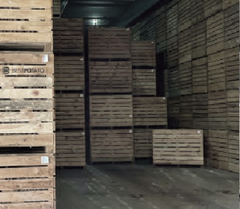 2 холодильні камери зберігання з охолодженням та зволожуванням повітря на 1600 та 600 тонн. Контейнерне зберігання картоплі.